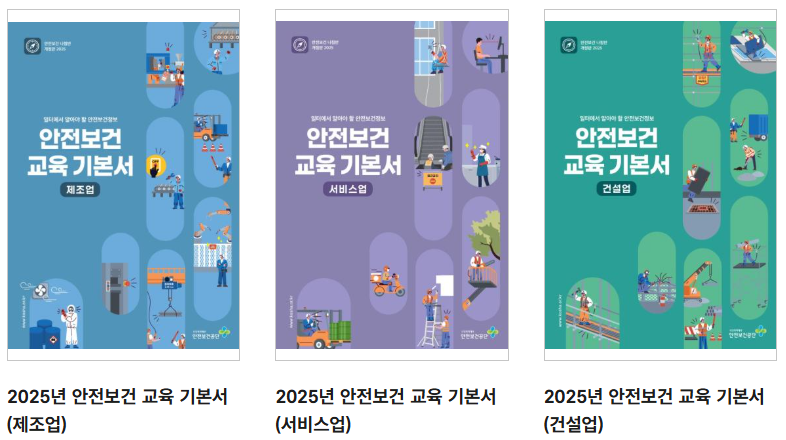 안전보건공단 산업안전포털 안전보건자료실에 [2025년 안전보건 교육 기본서-제조업/서비스업/건설업]이 게시되었습니다.
